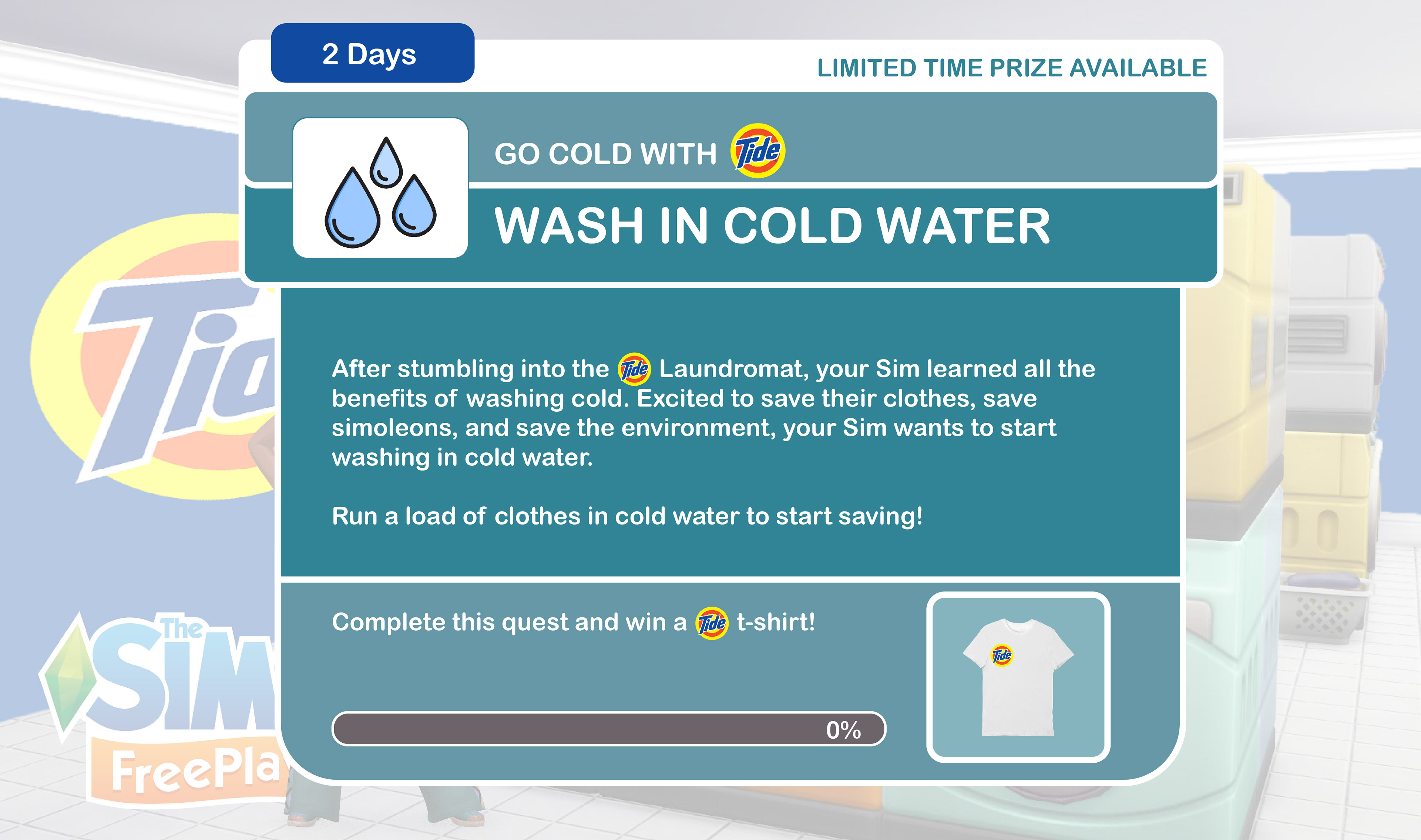 We partnered with EA to bring Tide into The Sims FreePlay and Sims 4. In FreePlay, players build and upgrade a Tide laundromat, while in Sims 4, they can explore a Tide expansion pack and careers like Laundromat Attendant and Environmental Scientist. Across both games, players learn the financial and environmental benefits of washing with cold water. Simulation games provide a subtle, engaging way to educate, reaching The Sims’ 80 million active users—including 48 million women ages 18–24.
