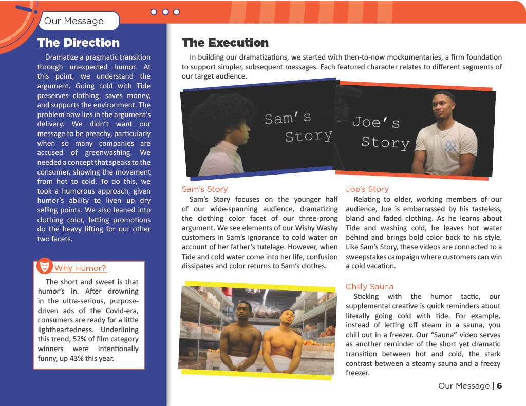By combining humor, relatable storytelling, and real-world experiences, the campaign shows that going cold with Tide saves:
