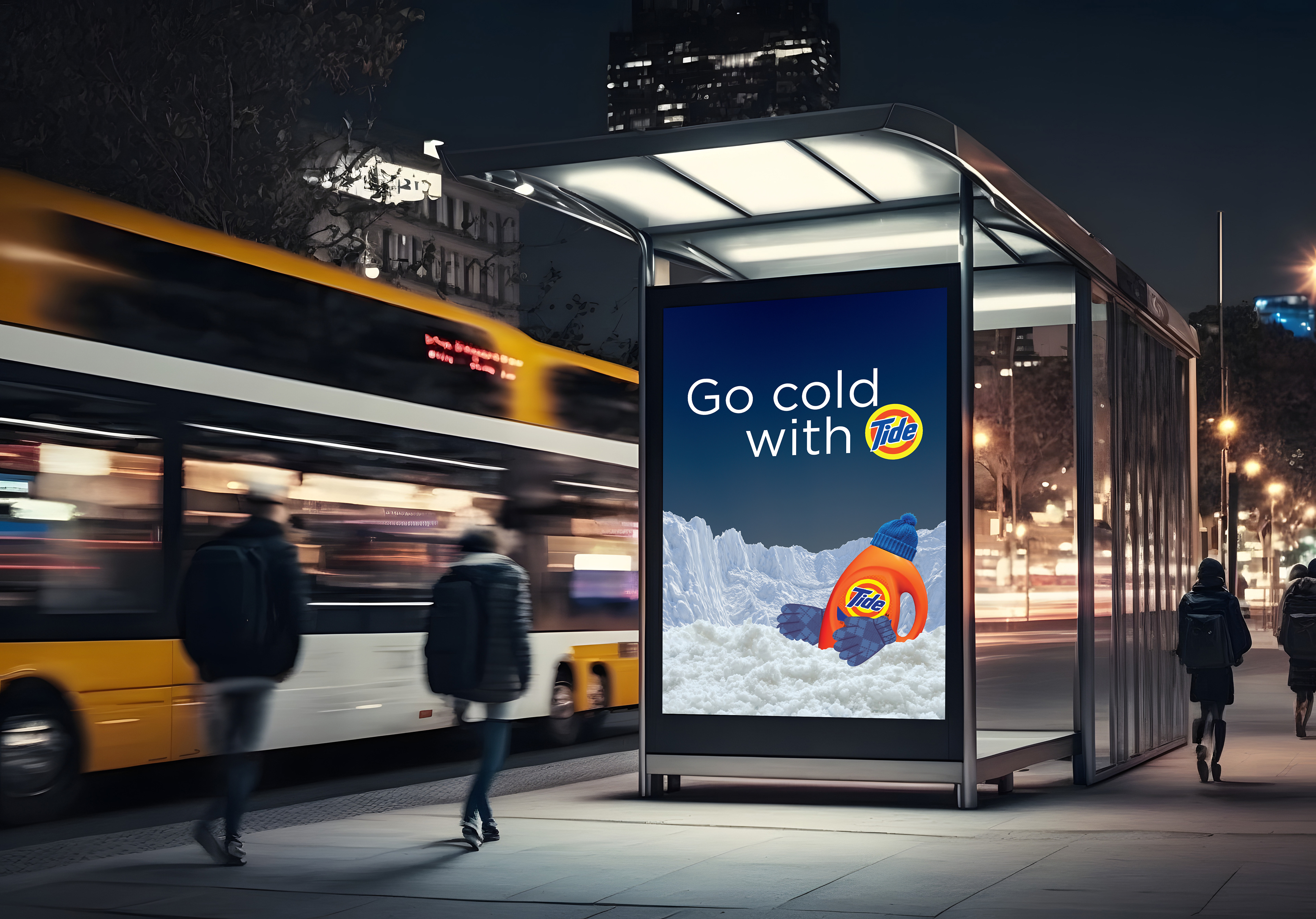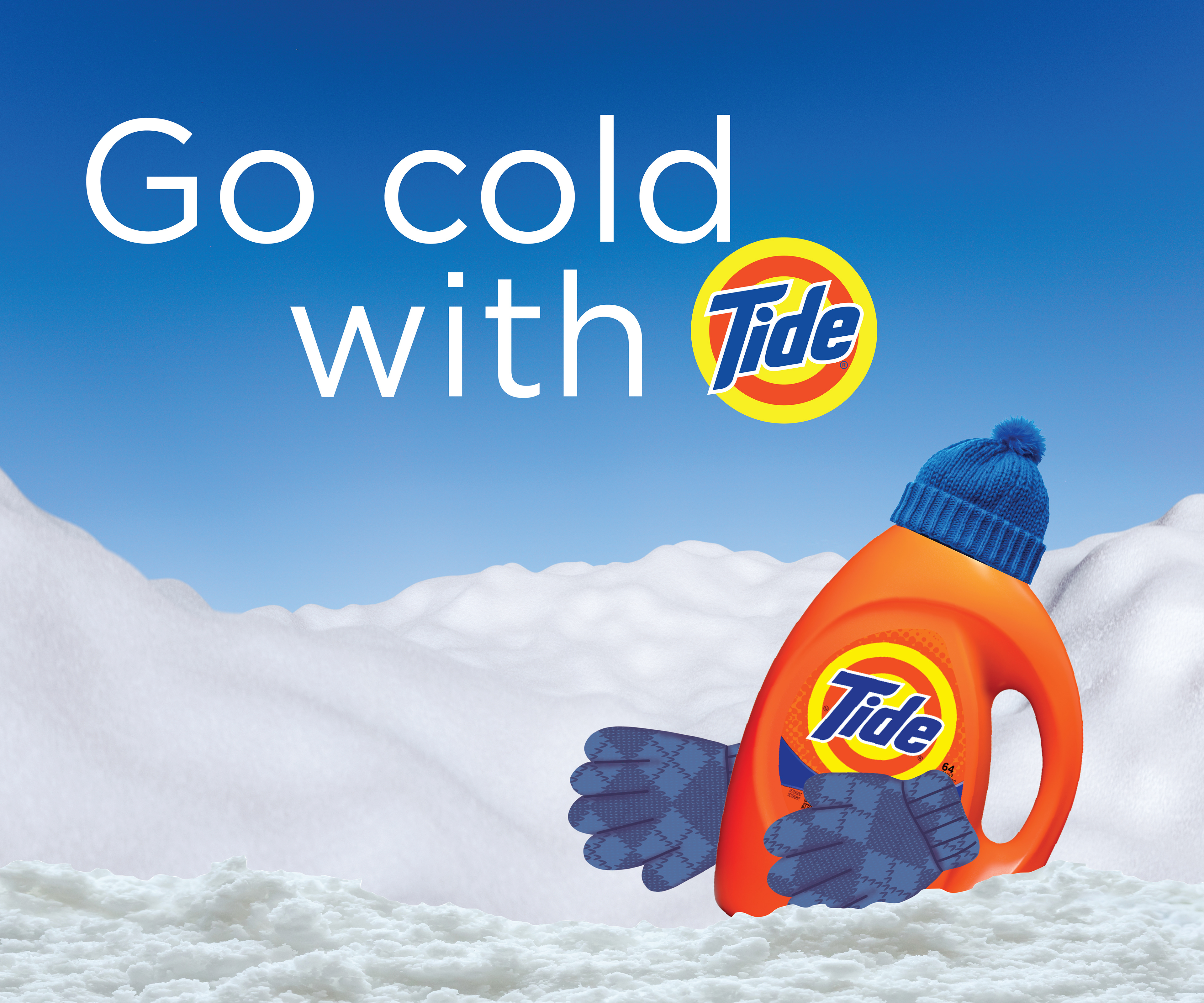 Our out-of-home advertising involves literal interpretations of going cold, where the Tide bottle goes on cold adventures across posters, billboards, and out-of-home displays.