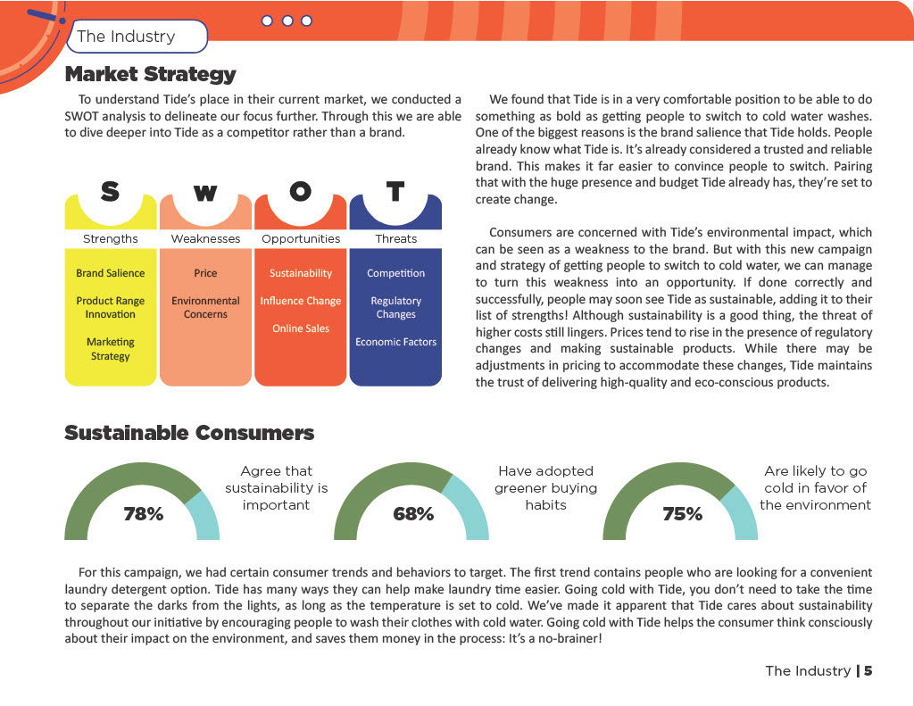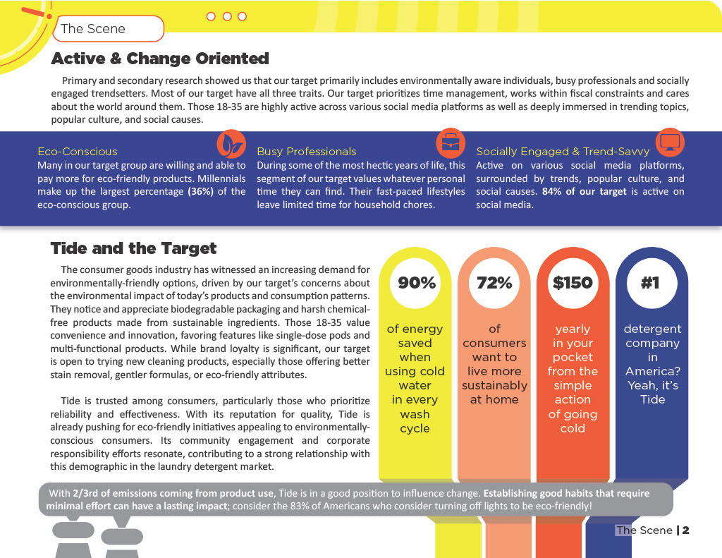 • Evaluated Tide’s current brand position, sustainability efforts, and marketing strategies within the detergent category.
